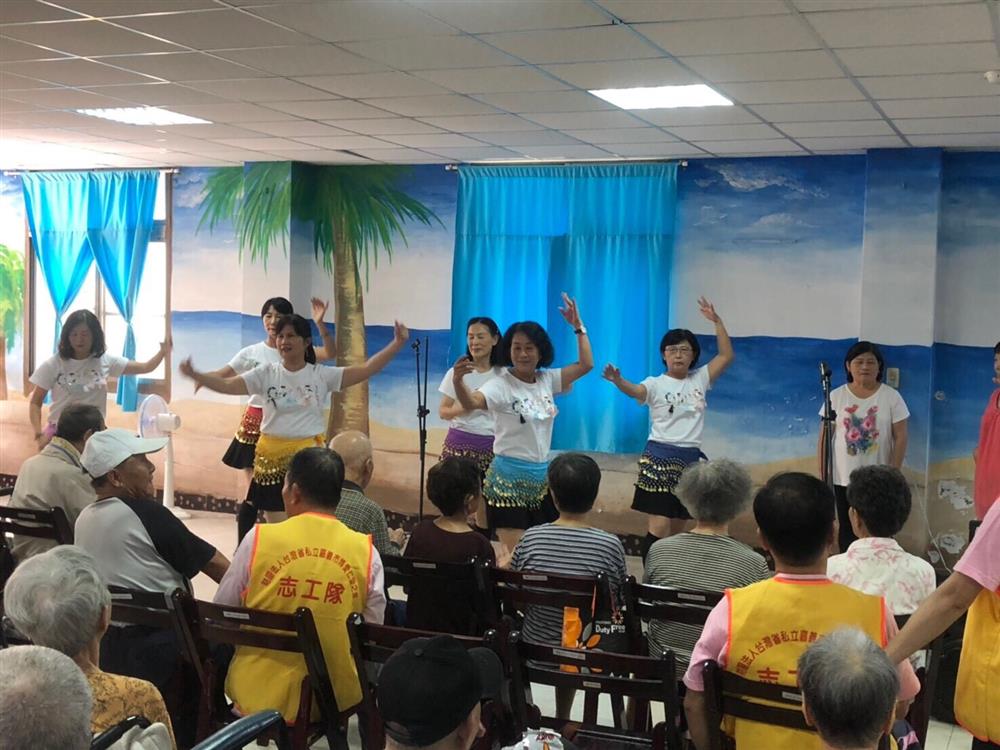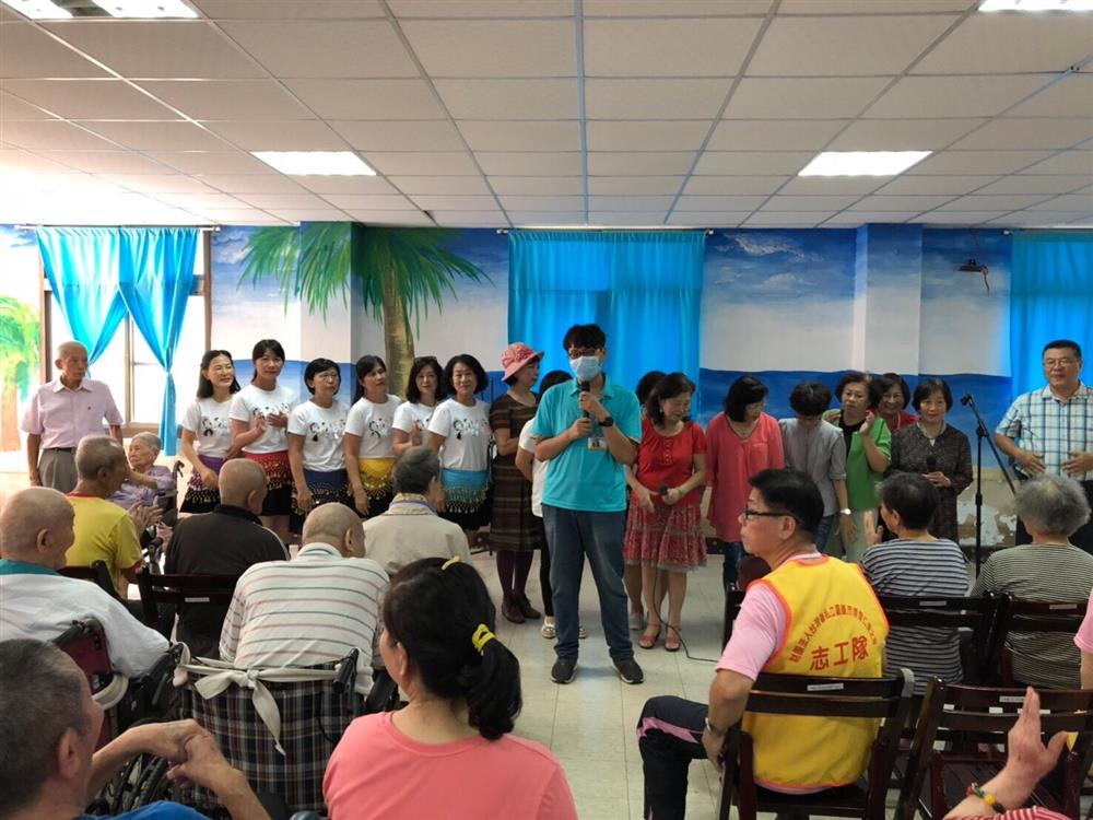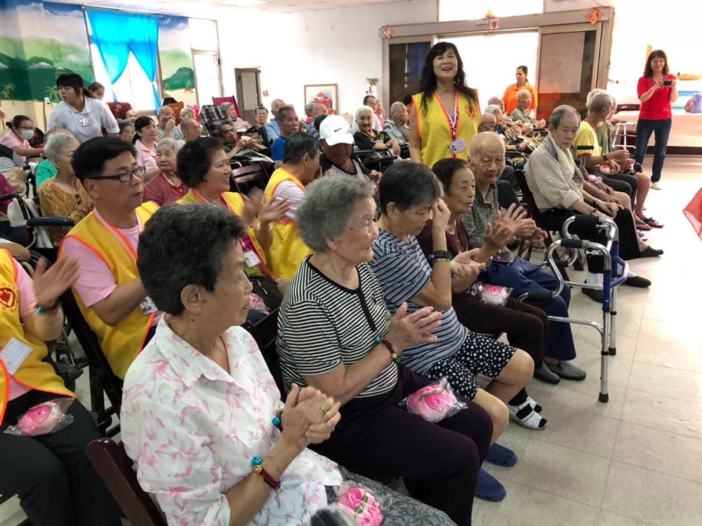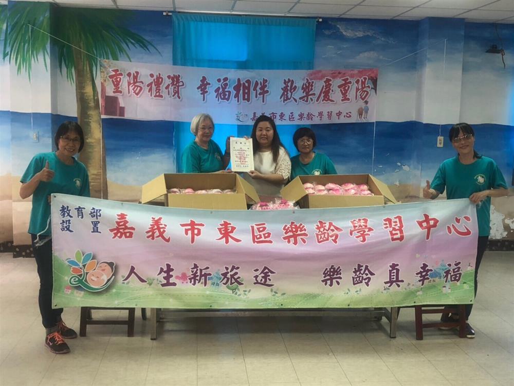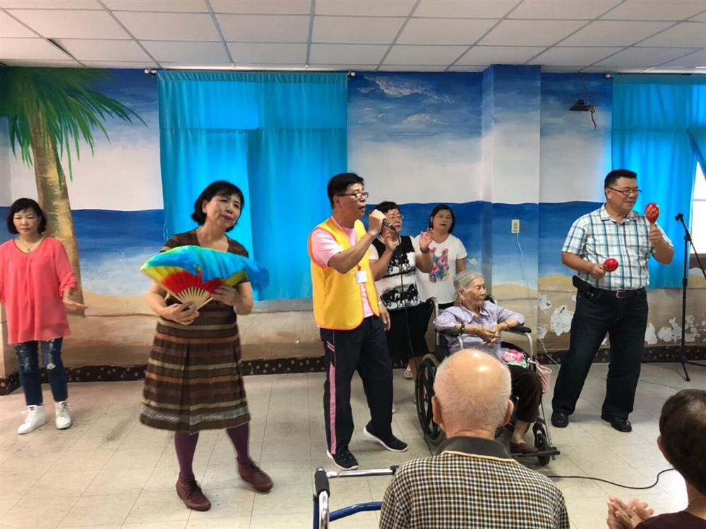 節慶活動 107.10.16『歡喜博愛•快樂九九』重陽節活動 107.10.16感謝「嘉義東區樂齡學習中心」贈送本機構長輩們100顆壽桃,長輩們每位都相當的高興,稱讚壽桃非常的好吃,而「博愛社區大學-梁冰漪老師歌唱班」勁歌熱舞的帶來多首歌曲,而本機構長輩也一起上台表演唱歌,活力十足,本機構志工團長也帶來一首日語歌曲,大獲現場熱烈好評,最後梁老師與長輩們一同合唱”外婆澎湖灣”來結束歡樂的時光。
