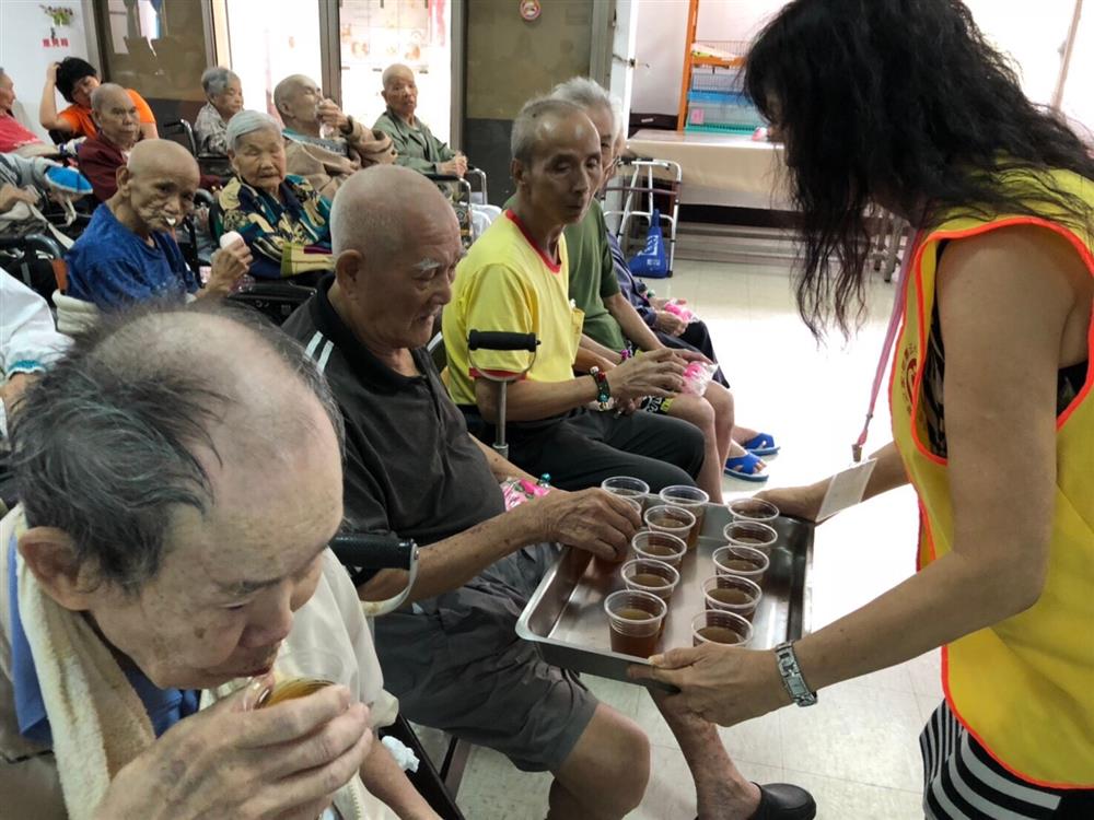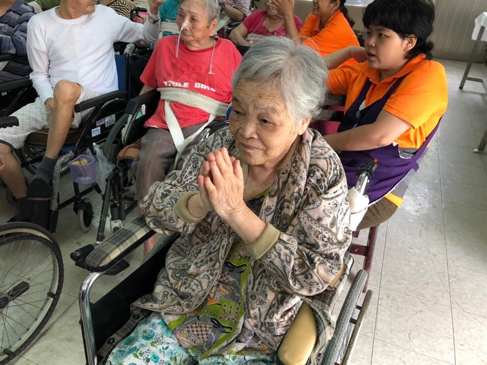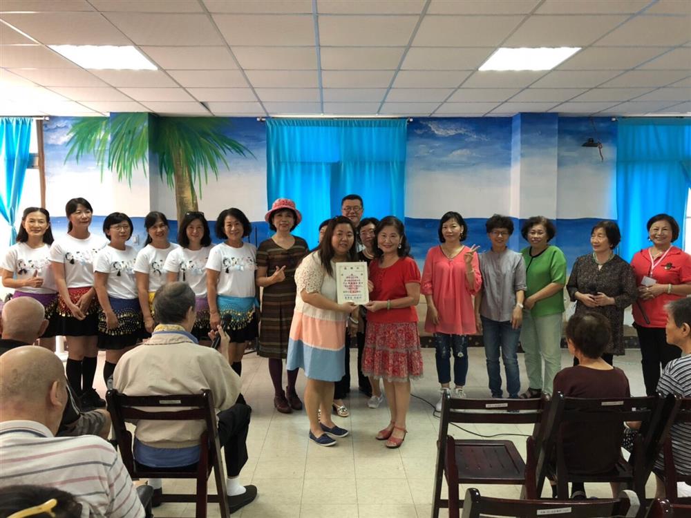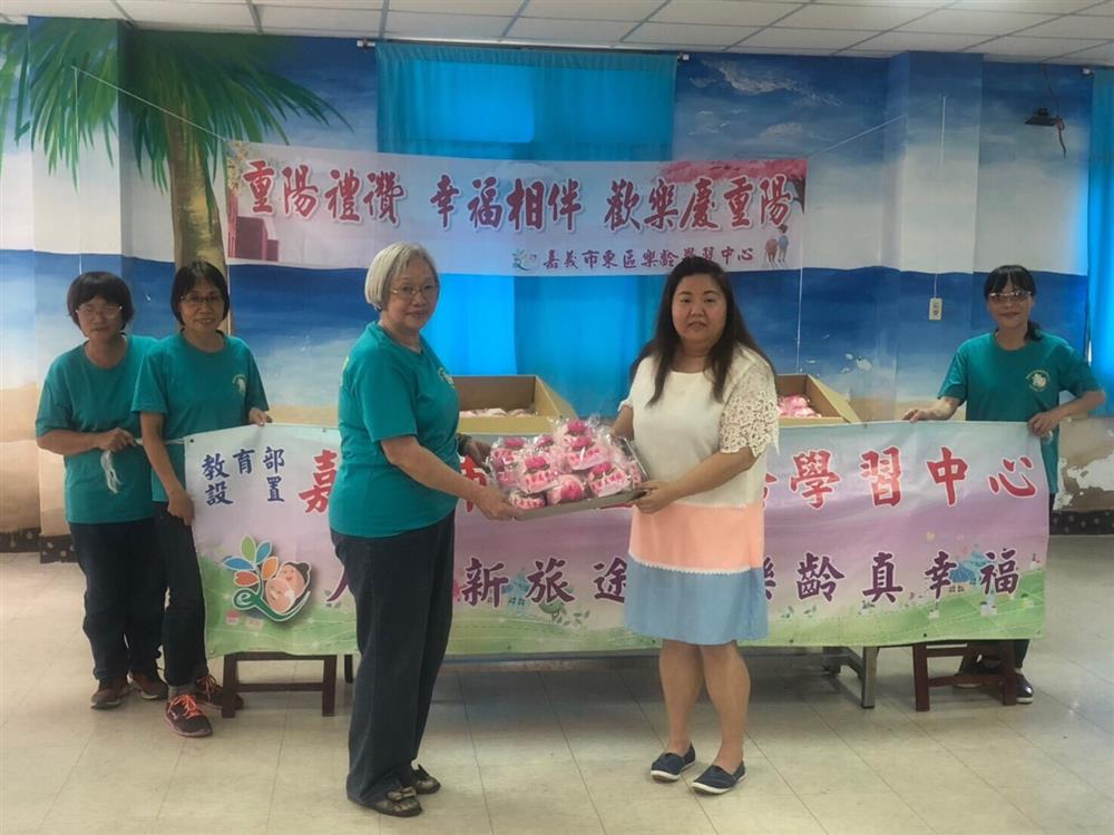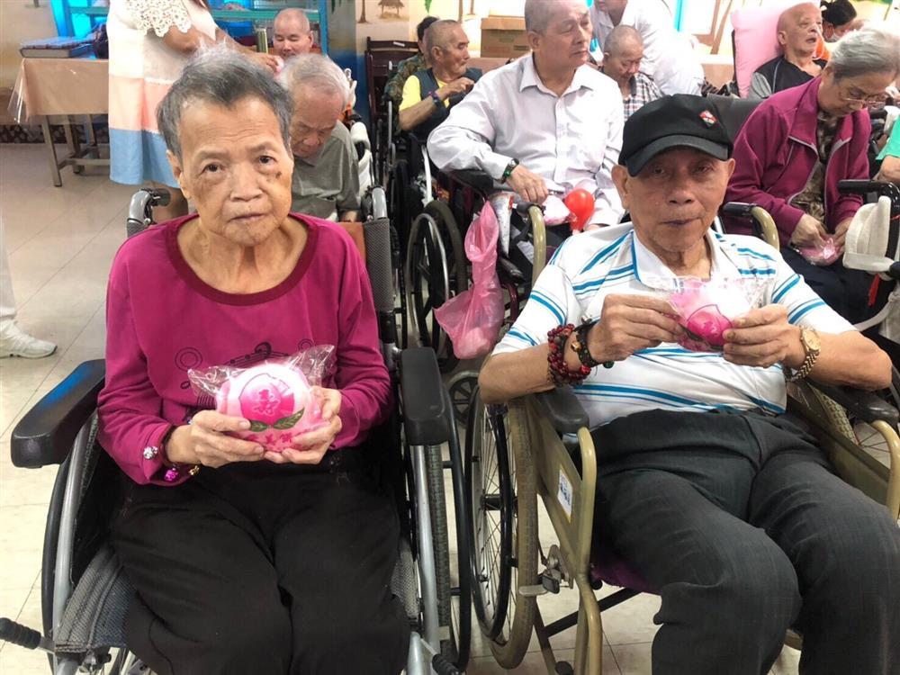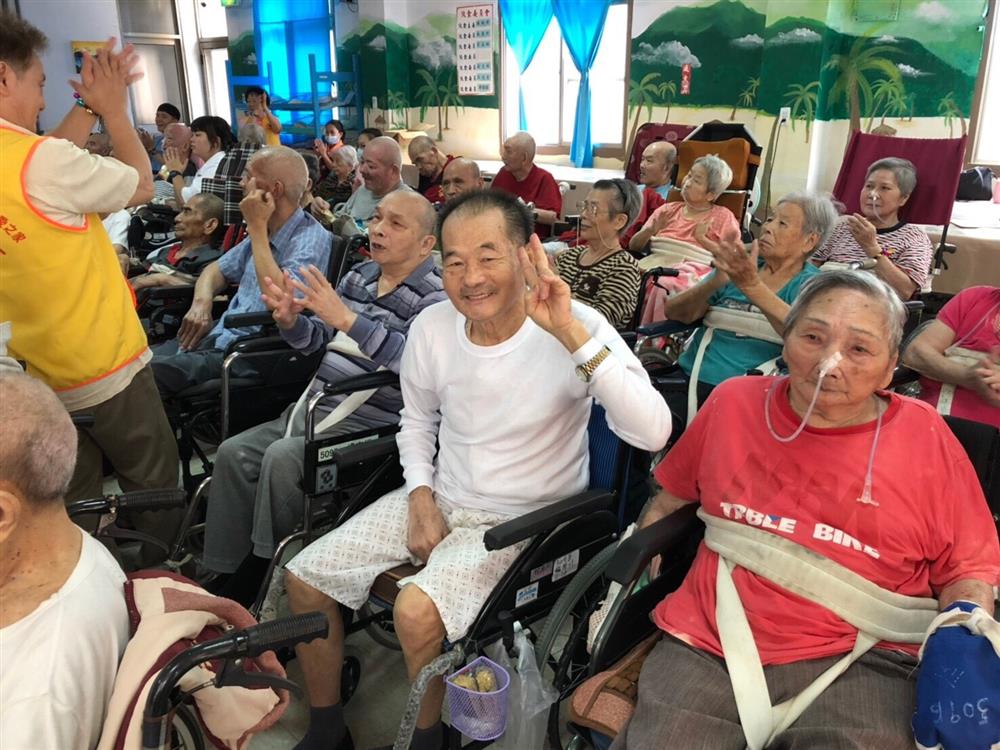 節慶活動 107.10.16『歡喜博愛•快樂九九』重陽節活動 107.10.16感謝「嘉義東區樂齡學習中心」贈送本機構長輩們100顆壽桃,長輩們每位都相當的高興,稱讚壽桃非常的好吃,而「博愛社區大學-梁冰漪老師歌唱班」勁歌熱舞的帶來多首歌曲,而本機構長輩也一起上台表演唱歌,活力十足,本機構志工團長也帶來一首日語歌曲,大獲現場熱烈好評,最後梁老師與長輩們一同合唱”外婆澎湖灣”來結束歡樂的時光。